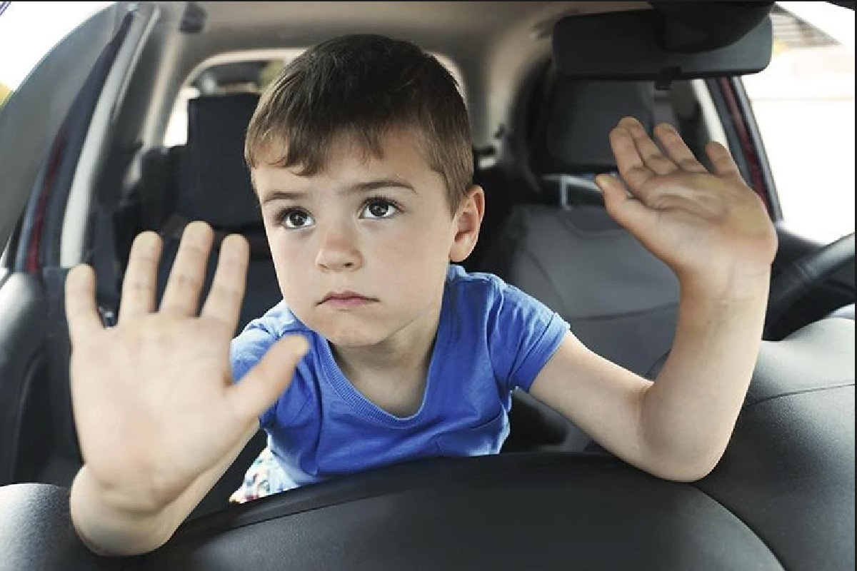 3. Dạy trẻ đứng ở phần kính trước vô lăng để cầu cứu người bên ngoài