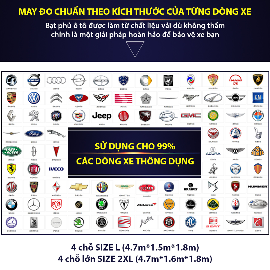 - Cam kết cung cấp Bạt phủ ô tô NB loại dày chống thấm nước 4 chỗ size L chính hãng 100%.