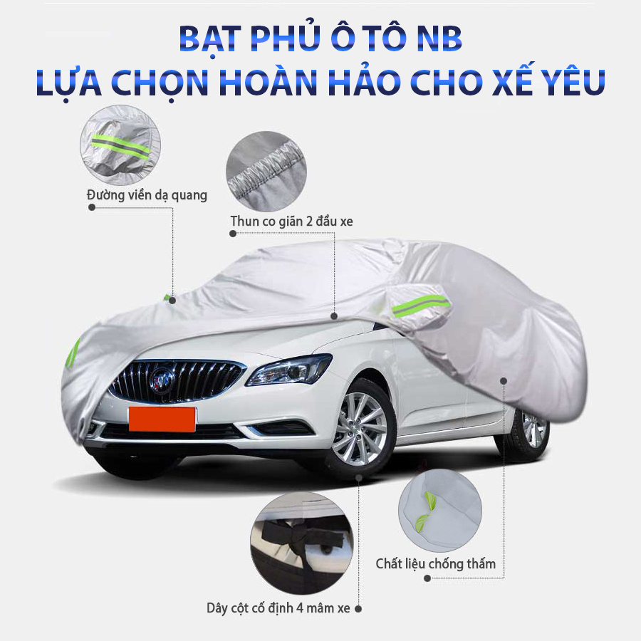 - Bạt phủ ô tô NB loại dày chống thấm nước 4 chỗ size L được chế tạo từ vải dù nhờ đó mang đến khả năng cách nhiệt đáng kinh ngạc.