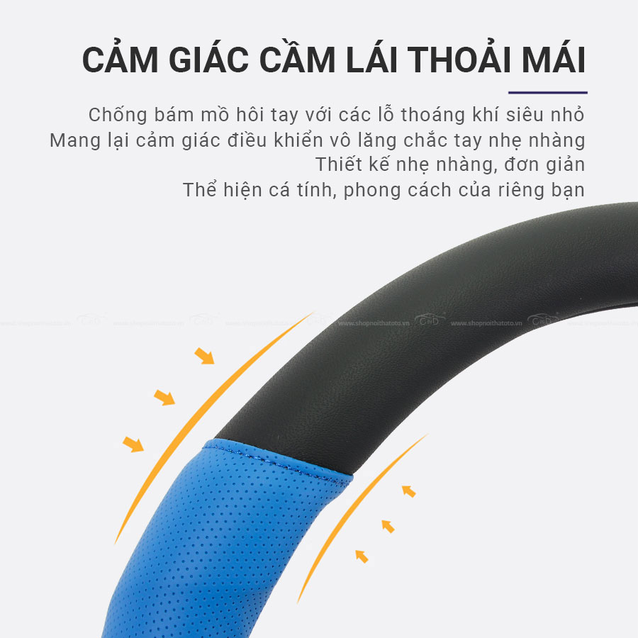 - Bọc được làm từ chất liệu cao cấp thấm hút mồ hôi, độ thoáng khí cao và không gây trơn trượt khi xoay vô lăng.