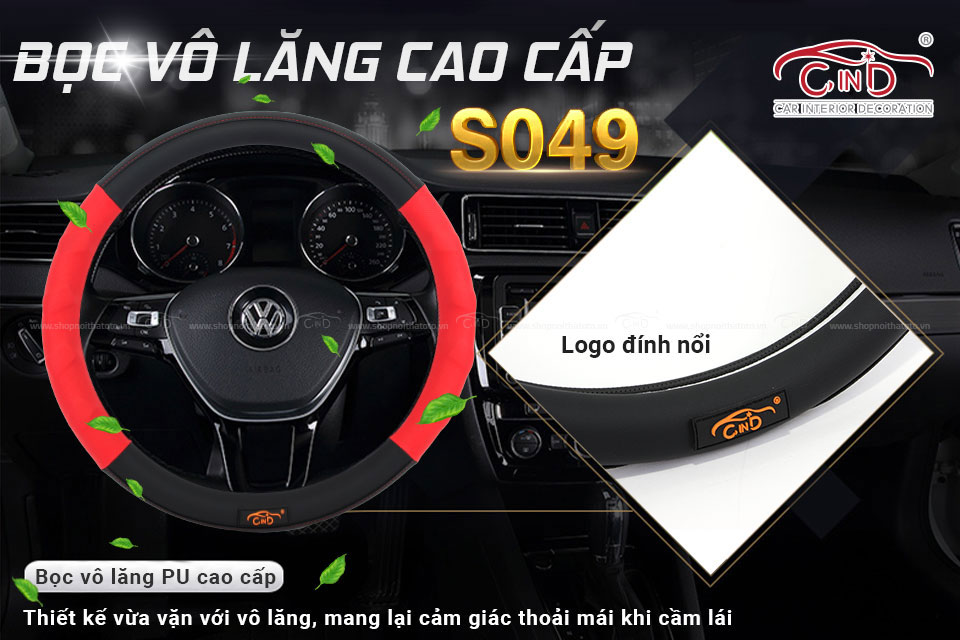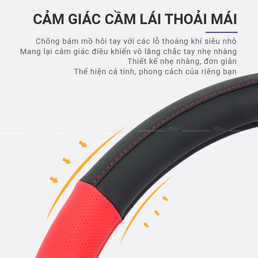 - Bọc vô lăng cao cấp CIND S049 size M màu đen đỏ sử dụng chất liệu cao cấp, mang đến sự dễ chịu nhất đến người sử dụng. Sản phẩm tạo cảm giác mềm mại, dễ chịu không gây thô cứng, đau nhức tay hay gây trơn trượt mồ hôi khi lái xe trong thời gian dài. Lỗ thoáng khí trên tay cầm giúp hạn chế đổ mồ hôi gây nhớp nháp khi lái xe.