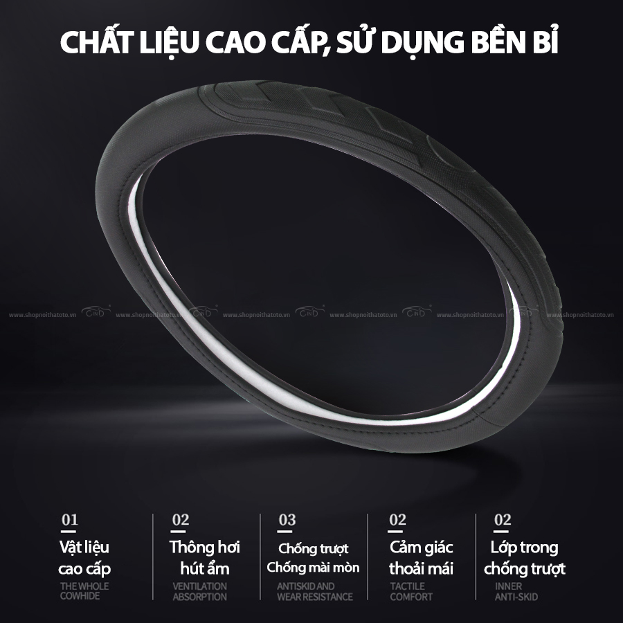 - Bọc được làm từ chất liệu cao cấp thấm hút mồ hôi, độ thoáng khí cao không gây trơn trượt khi xoay vô lăng.