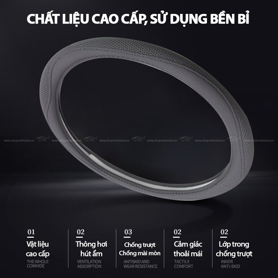 - Bọc được làm từ chất liệu cao cấp thấm hút mồ hôi, độ thoáng khí cao và không gây trơn trượt khi xoay vô lăng.