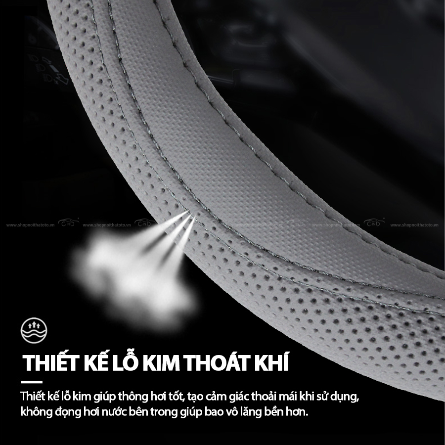 - Đường chỉ may tinh tế tạo nên nét sang trọng, tinh tế cho chiếc bao vô lăng.