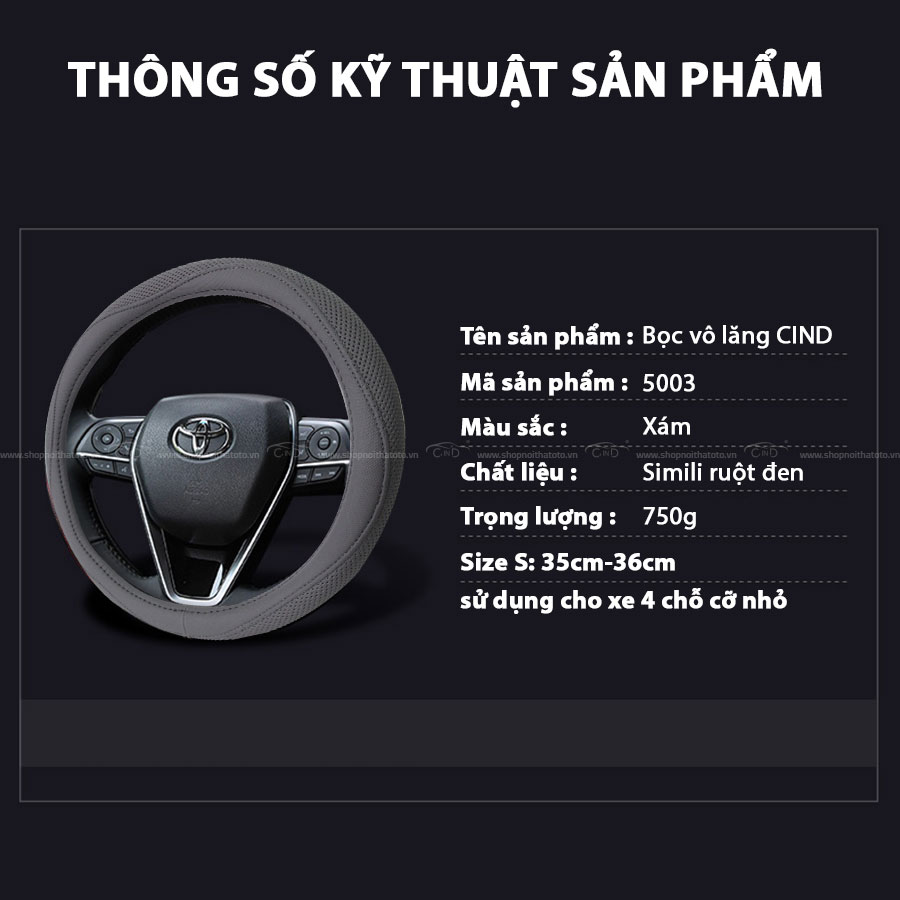 Tại sao bạn nên chọn Bọc vô lăng CIND 5003 size S màu xám tại Shop nội thất ô tô CIND?