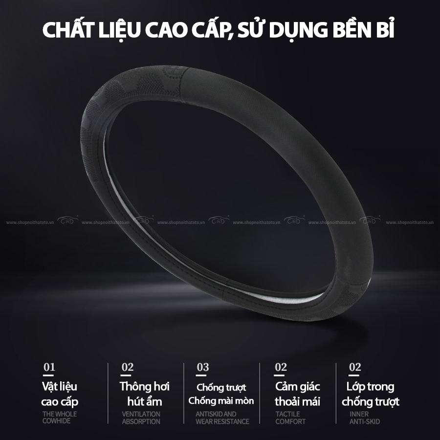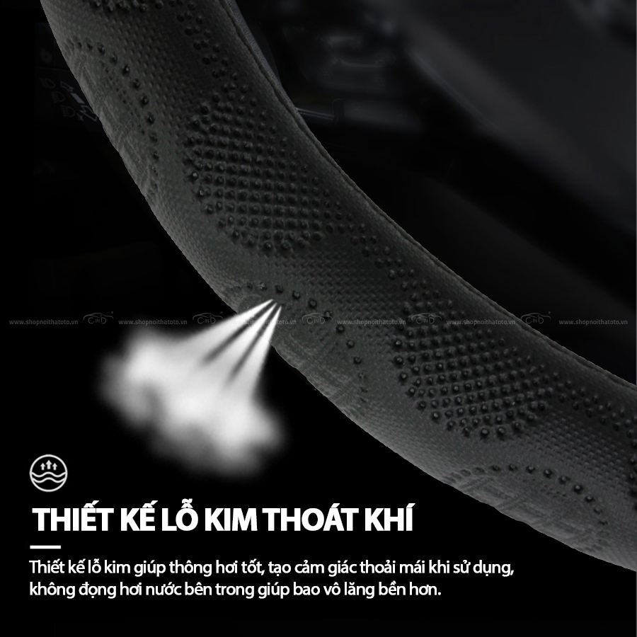 - Bọc được làm từ chất liệu cao cấp thấm hút mồ hôi, độ thoáng khí cao và không gây trơn trượt khi xoay vô lăng.