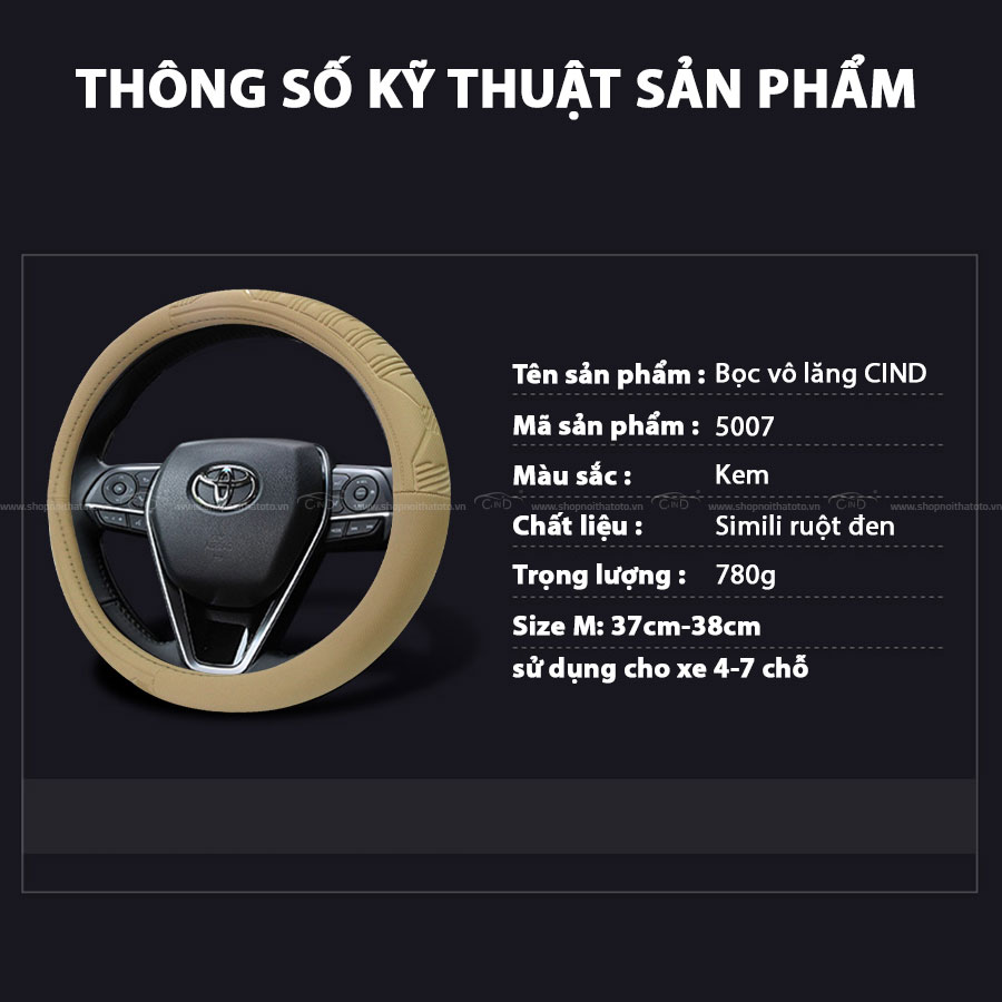 Tại sao bạn nên chọn Bọc vô lăng CIND 5007 size M màu kem tại Shop nội thất ô tô CIND?