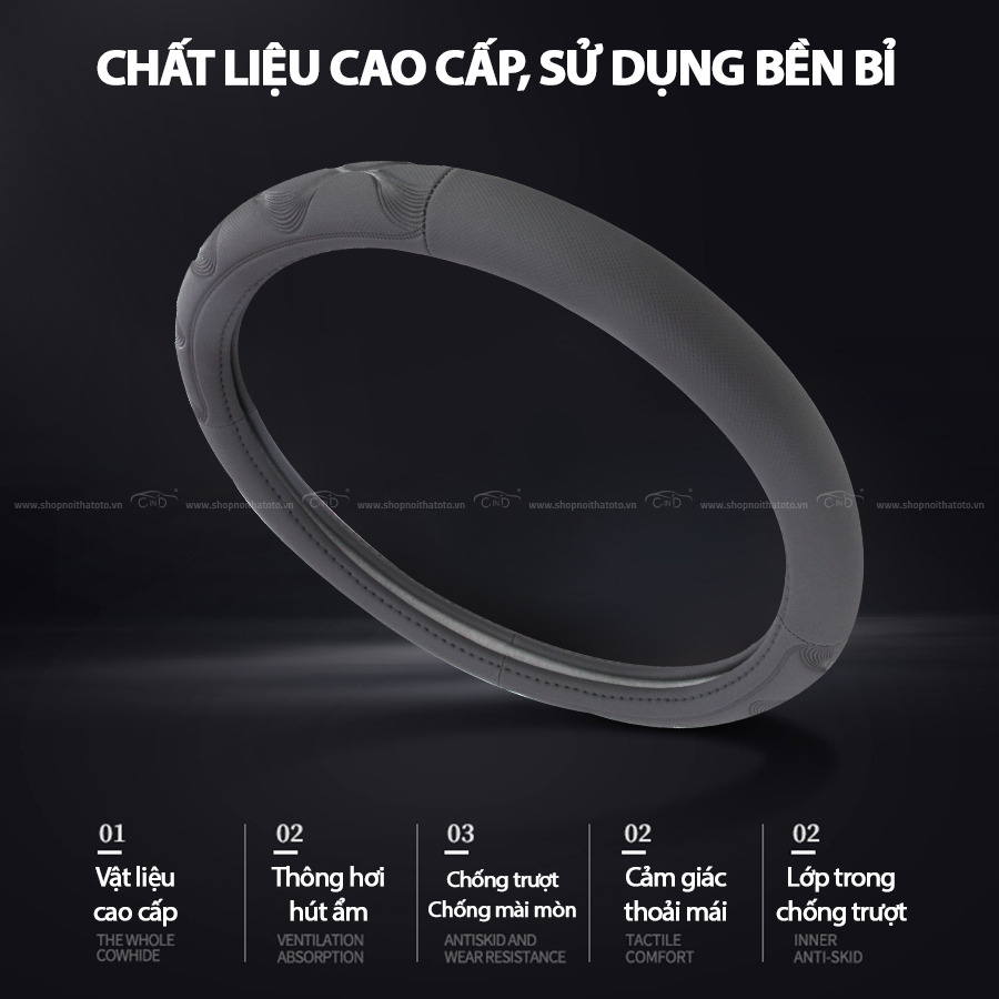 - Bọc được làm từ chất liệu cao cấp thấm hút mồ hôi, độ thoáng khí cao và không gây trơn trượt khi xoay vô lăng.