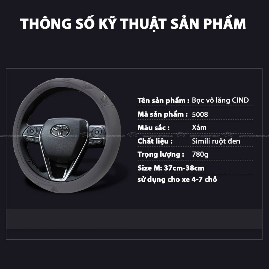 - Cam kết cung cấp Bọc vô lăng CIND 5008 size M màu xám chính hãng 100%.