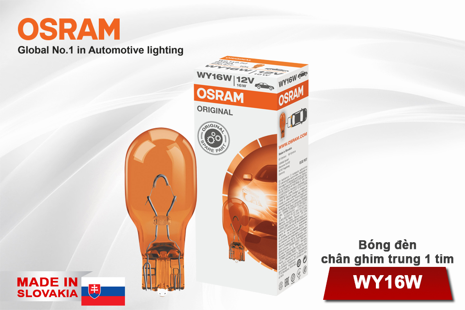 - Bóng đèn chân ghim trung 1 tim OSRAM ORIGINAL WY16W 12v 16w màu vàng được chế tạo bằng thủy tinh cao cấp đạt tuổi thọ sử dụng cao giúp hỗ trợ chiếu sáng hiệu quả trên những chặng đường dài