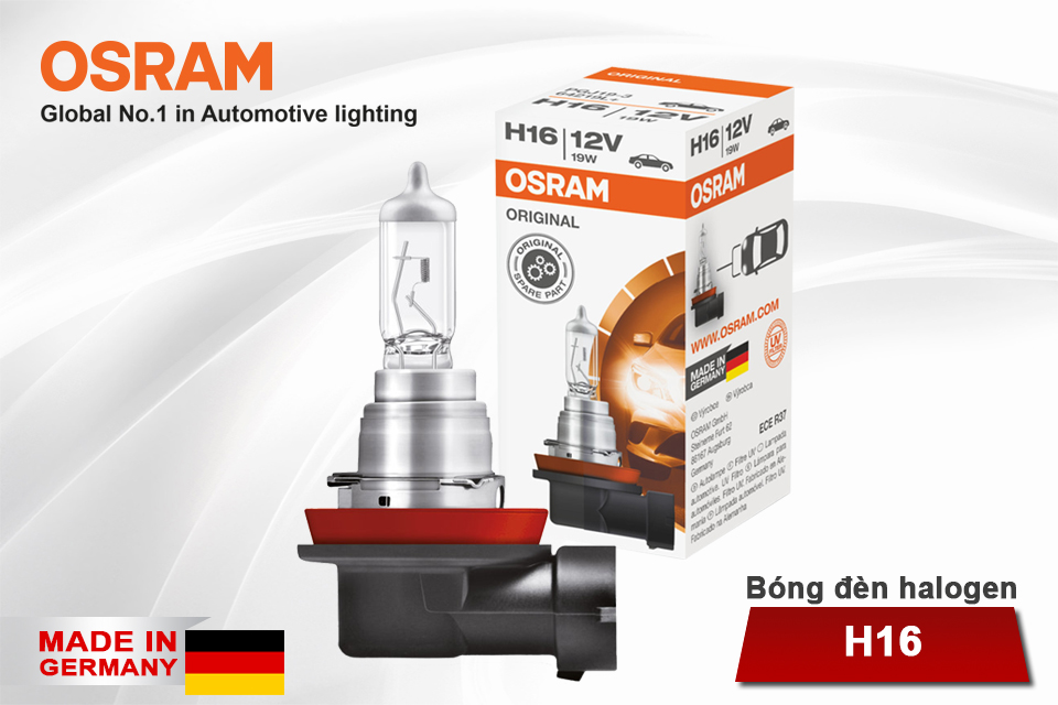 - Bóng đèn halogen OSRAM ORIGINAL H16 12v 19w được chế tạo bằng thủy tinh cao cấp đạt tuổi thọ sử dụng cao giúp hỗ trợ chiếu sáng hiệu quả trên những chặng đường dài