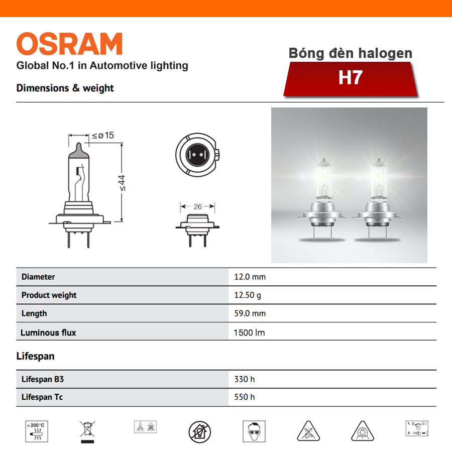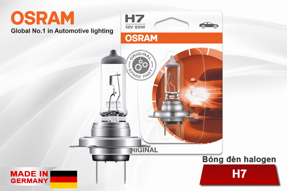 - Bóng đèn halogen OSRAM ORIGINAL H7 12v 55w được chế tạo bằng thủy tinh cao cấp đạt tuổi thọ sử dụng cao giúp hỗ trợ chiếu sáng hiệu quả trên những chặng đường dài