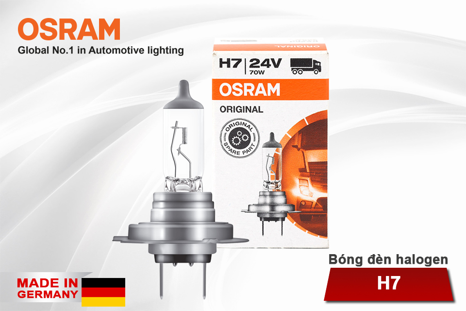 - Bóng Đèn Halogen OSRAM Original H7 64215 24V 70W được chế tạo bằng thủy tinh cao cấp đạt tuổi thọ sử dụng cao giúp hỗ trợ chiếu sáng hiệu quả trên những chặng đường dài