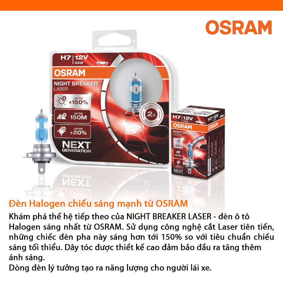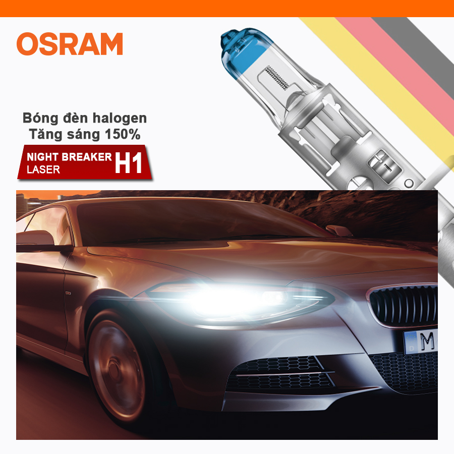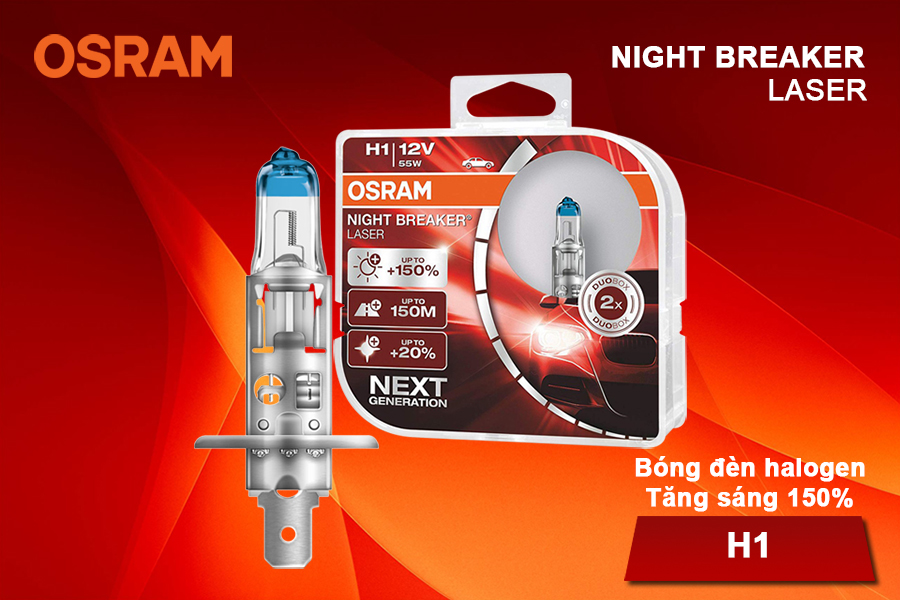- Bóng đèn halogen tăng sáng 150% OSRAM NIGHT BREAKER LASER H1 12v 55w được chế tạo bằng thủy tinh cao cấp giúp hỗ trợ chiếu sáng hiệu quả trên những chặng đường dài.
