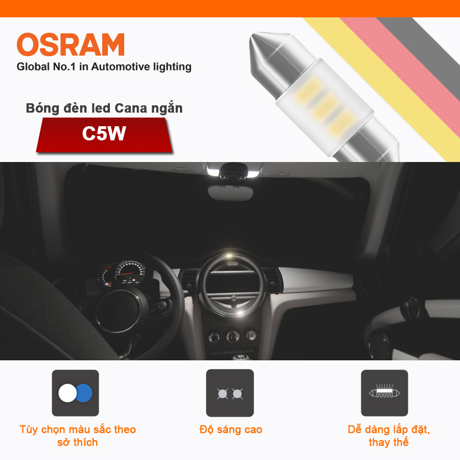 - Bóng đèn led Cana ngắn OSRAM STANDARD RETROFIT C5W 12v màu trắng sky được chế tạo bằng chất liệu cao cấp đạt tuổi thọ sử dụng cao, hiệu quả chiếu sáng tốt cả nội thất lẫn ngoại thất ô tô.