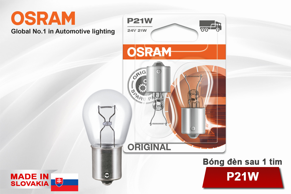 - Bóng đèn sau 1 tim OSRAM ORIGINAL P21W 24v 21w (chân thẳng) được chế tạo bằng thủy tinh cao cấp, được sản xuất và kiểm tra bằng quy trình nghiêm ngặt nhất.