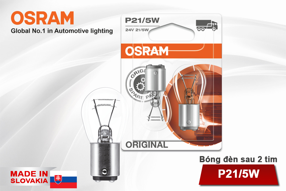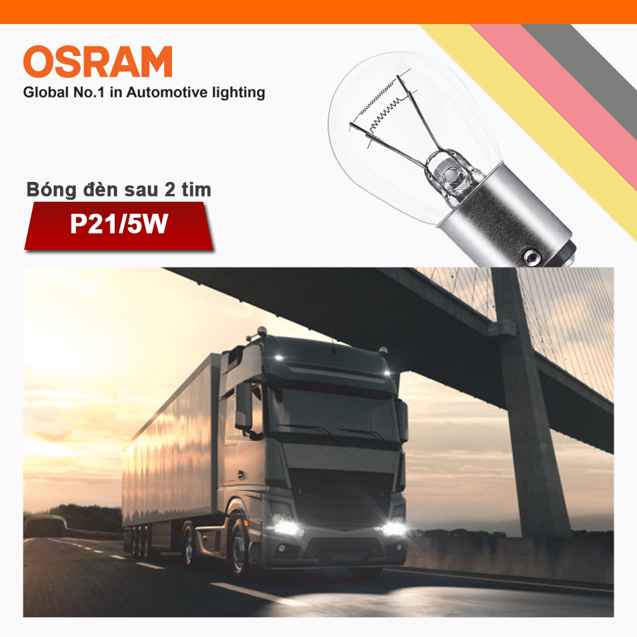 - Bóng đèn sau 2 tim OSRAM ORIGINAL P21/5W 24v 21/5w (chân cao thấp) được chế tạo bằng thủy tinh cao cấp đạt tuổi thọ sử dụng cao giúp hỗ trợ chiếu sáng hiệu quả trên những chặng đường dài