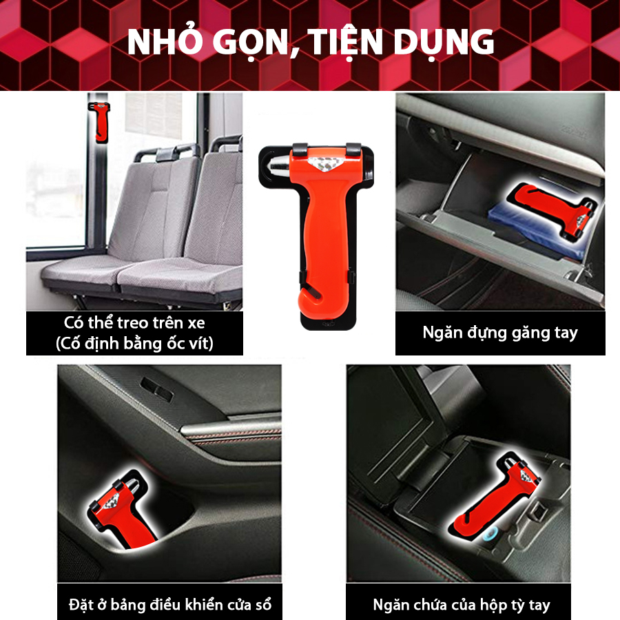 - Với đầu búa cứng cáp, khi xảy ra tình huống nguy cấp bạn có thể nhanh chóng phá vỡ cửa kính ô tô và thoát ra bên ngoài chỉ với vài cú gõ.