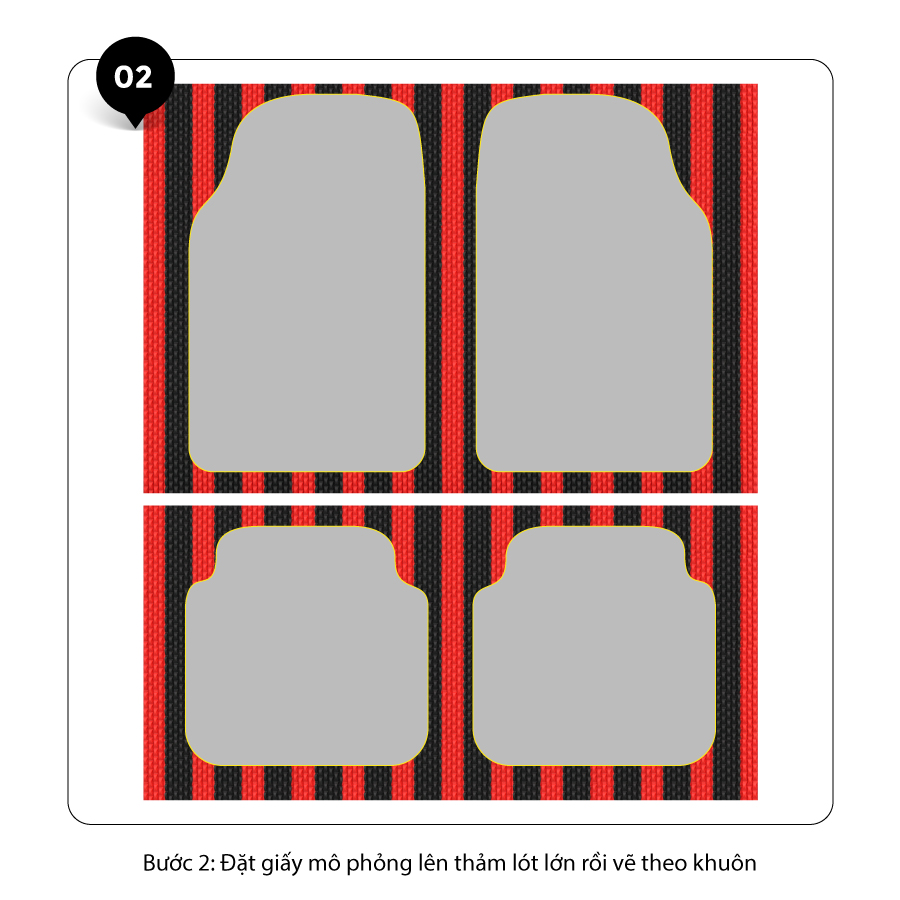 B2: Đặt giấy mô phỏng lên thảm lót lớn rồi vẽ theo khuôn