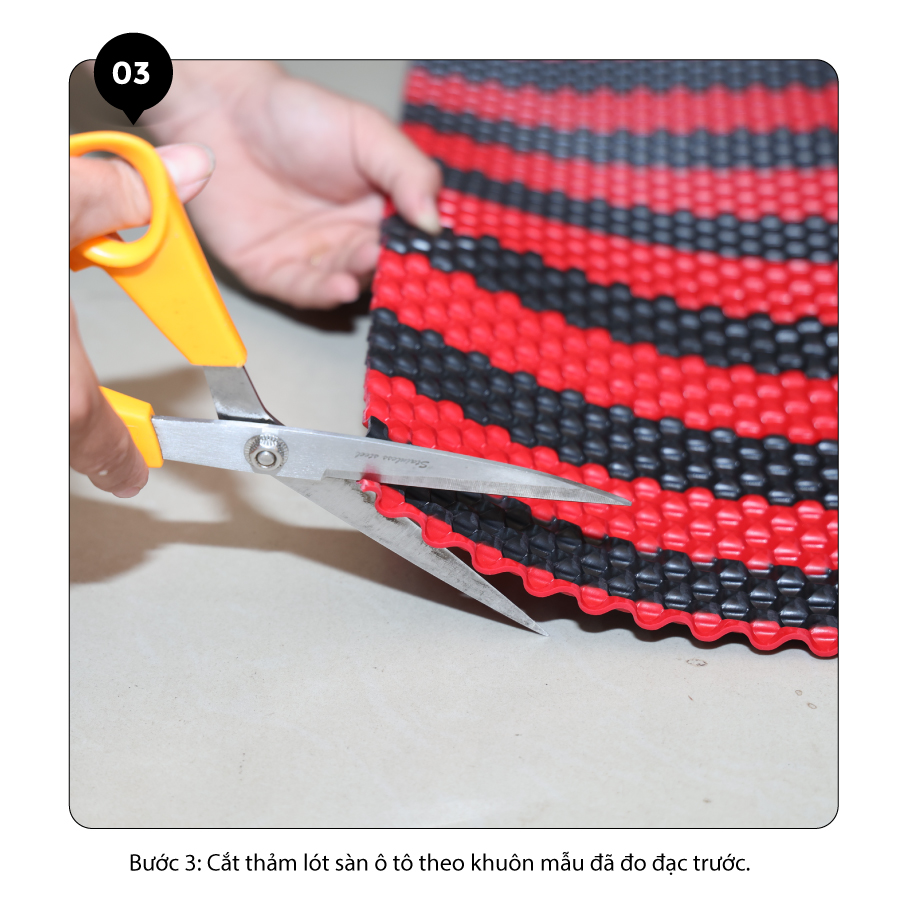 B3: Cắt thảm lót sàn ô tô theo khuôn mẫu đã đo đạc trước.