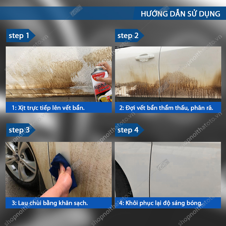 - Tẩy sạch các vết nhựa đường, lấy lại vẻ sáng bóng như mới.