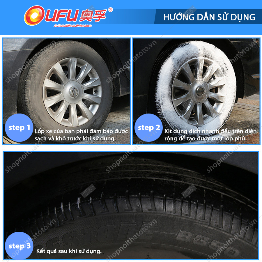 - Điều này sẽ làm cho sản phẩm của OUFU thấm sâu vào cao su tạo ra một liên kết mạnh mẽ, lâu dài với lốp xe.