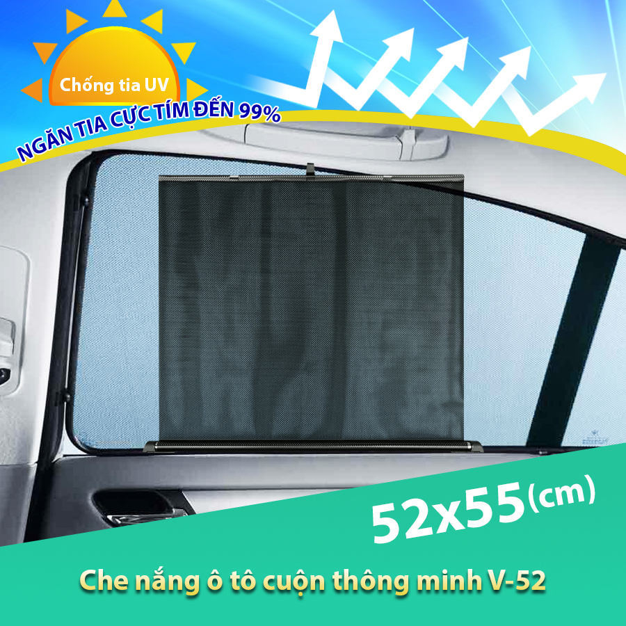 - Che nắng ô tô cuộn thông minh V-52 (52*55 cm) có khả năng phản xạ ánh sáng mặt trời cực kì hiệu quả, giúp hạn chế sự tác động nhiệt của ánh nắng lên làn da, sức khỏe và nội thất bên trong xe của bạn.