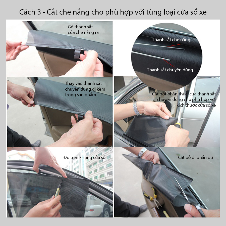 - Hướng dẫn sử dụng: Gắn cố định che nắng chìm ngắn lên phía trên mép cửa xe.