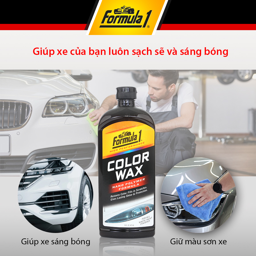 - Dầu bóng sơn nano đậm đặc cho xe màu trắng FORMULA 1 615493 473ml với thành phần chính sắc tố ổn định UV không những giúp chiếc xe của bạn nhanh chóng có được độ bóng loáng như mới, mà còn giúp bảo vệ xe tốt hơn khỏi những ảnh hưởng xấu từ môi trường. Sản phẩm có xuất xứ tại Mỹ, được đặc chế từ các nguyên liệu hoàn toàn lành tính nên không gây nên tác hại nào cho bạn trong quá trình sử dụng.