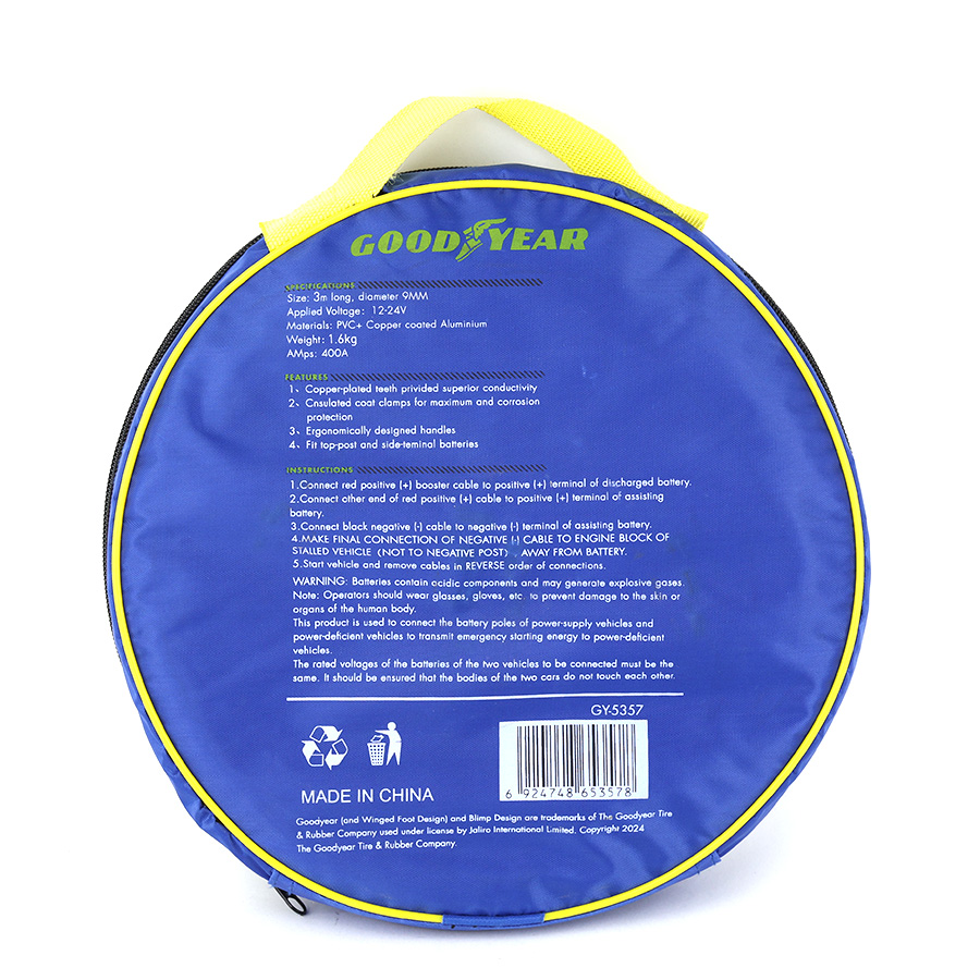 Dây Câu Bình Ắc Quy Lõi Đồng 400A Dài 3m GOODYEAR GY-5357 Kích Điện Cứu Hộ Ô tô