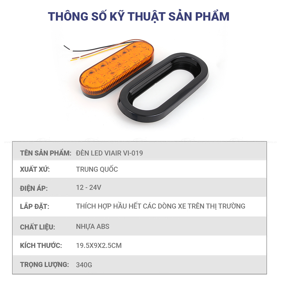 - Đèn led hình oval xe tải VIAIR VI-019 24v màu vàng được chế tạo bằng nhựa ABS và đèn LED giúp sản phẩm đạt tuổi thọ sử dụng cao giúp hỗ trợ chiếu sáng hiệu quả trên những chặng đường dài.