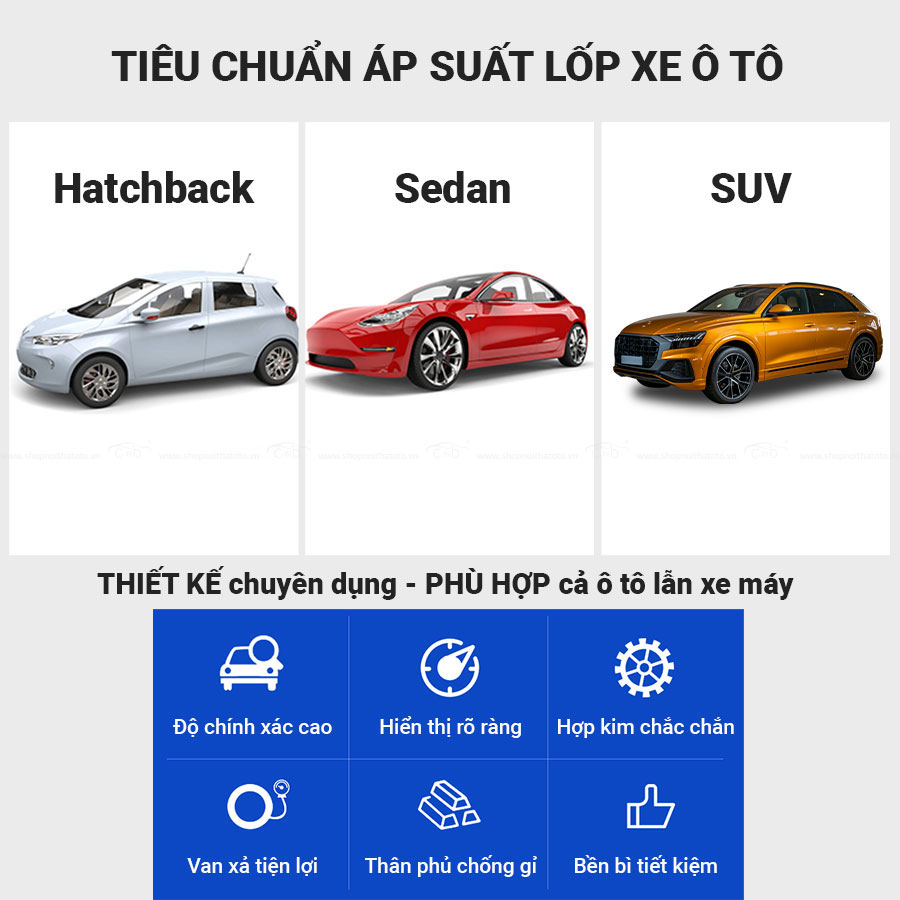 - Đo áp suất lốp xe máy và ô tô chính xác, giúp tăng độ an toàn khi xe lăn bánh.