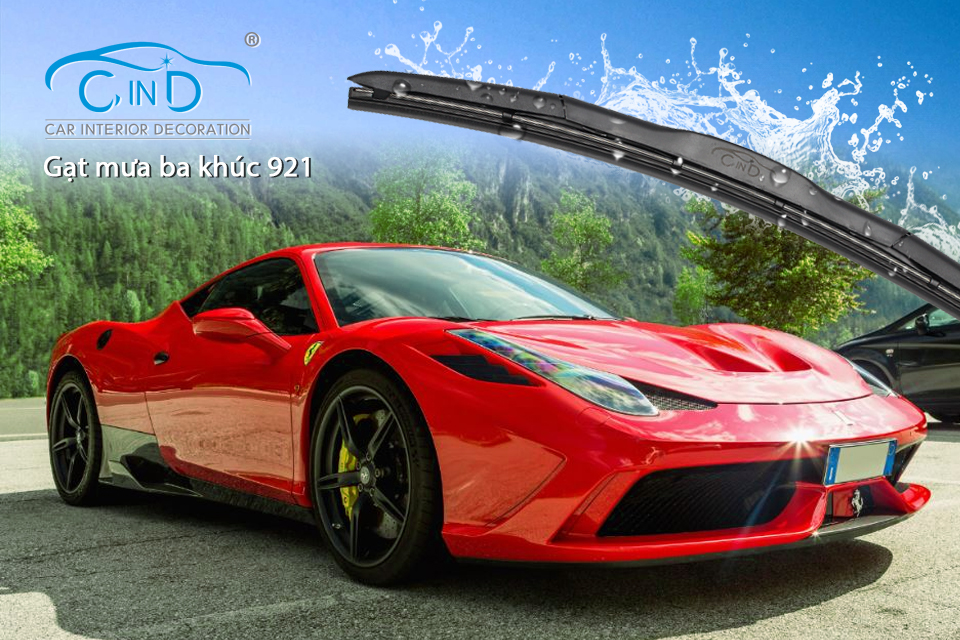 Gạt mưa 3 khúc CIND 921 (18 inch/450 mm) có thiết kế 3 khúc tiện lợi giúp làm sạch bề mặt kính một cách hiệu quả với hiệu suất 100% mà không gây tiếng ồn hay làm trầy xước bề mặt kính.
