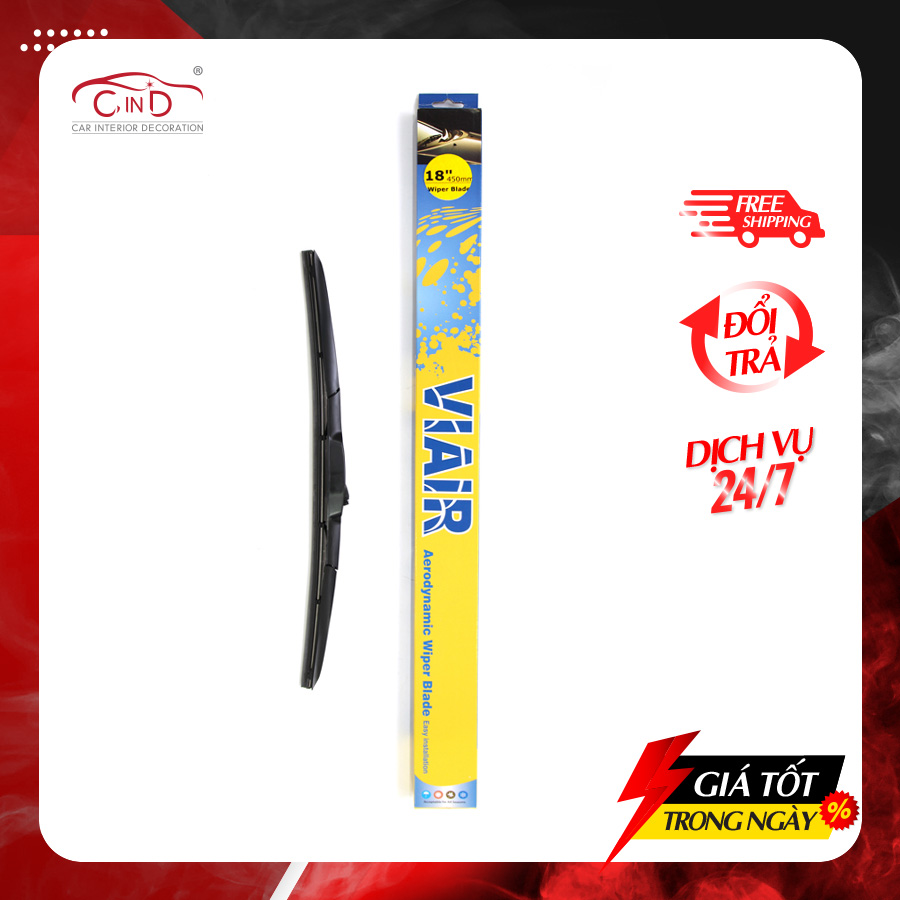 - Gạt mưa 3 khúc VIAIR 331 (18 inch/450 mm) với nguyên liệu cao su tự nhiên, sản phẩm có tác dụng tẩy sạch nước mưa bám trên bề mặt kính với hiệu suất 100%.