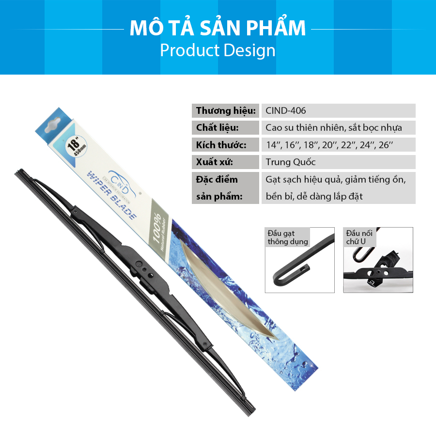 - Cam kết cung cấp Gạt mưa gọng sắt CIND 406 (26 inch/650 mm) chính hãng 100%.