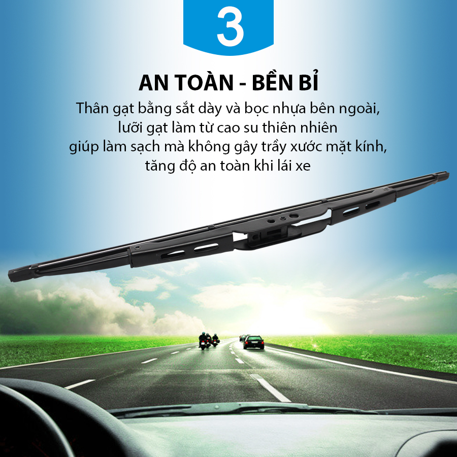 - Gạt mưa gọng sắt CIND 406 (26 inch/650 mm) được chế tạo bằng chất liệu sắt dày và được bọc nhựa bên ngoài.