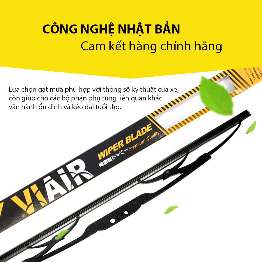 - Gạt mưa gọng sắt VIAIR 311 (20 inch/500 mm) được nghiên cứu và chế tạo bởi công nghệ tiên tiến, với nguyên liệu sắt dày, bền chắc và được bọc nhựa bên ngoài có tác dụng chống rỉ sắt rất tốt. Lưỡi gạt được làm từ 100% cao su thiên nhiên nên giúp tẩy sạch nước bám trên mặt kính một cách hiệu quả mà không làm trầy xước mặt kính.