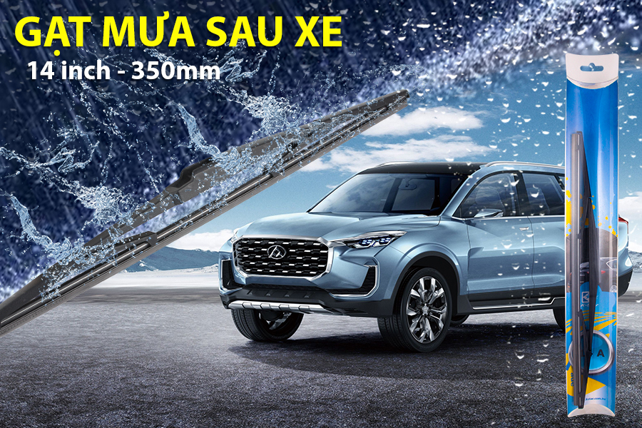 - Gạt mưa sau xe (14 inch/350 mm) với nguyên liệu cao su tự nhiên, sản phẩm có tác dụng tẩy sạch nước mưa bám trên bề mặt kính với hiệu suất 100%.