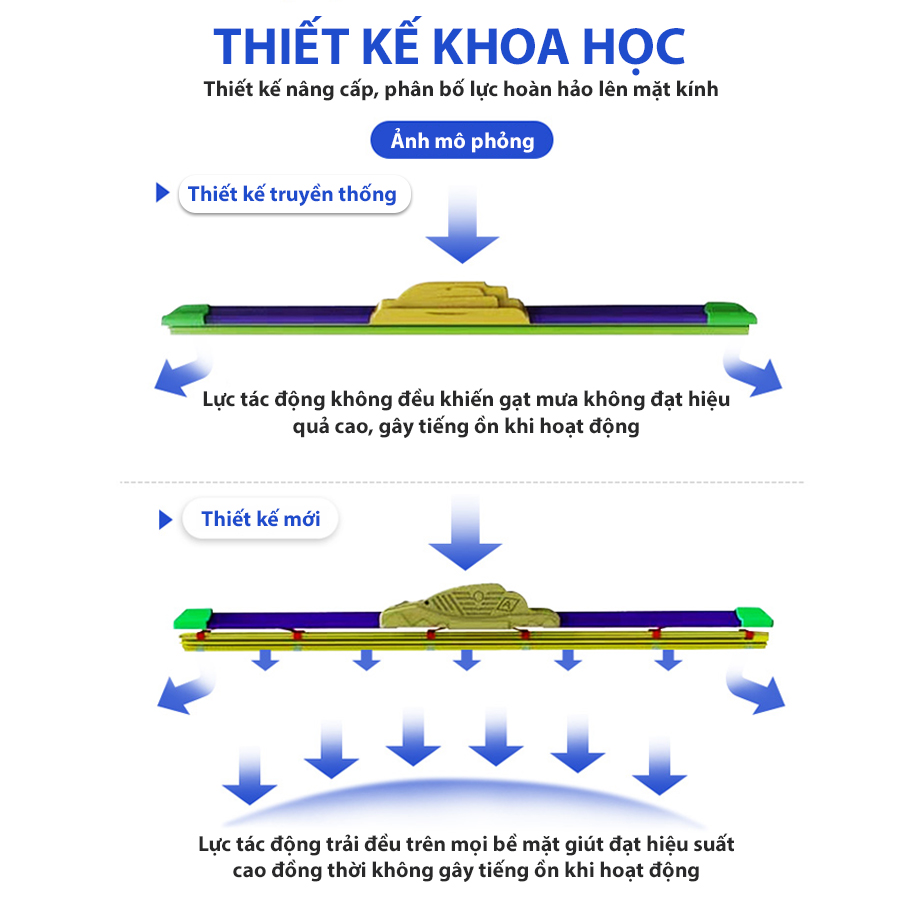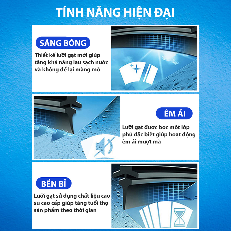- Thiết kế 3 khúc tiện lợi cho việc gạt nước, kiểu dáng phù hợp sử dụng với nhiều dòng xe ô tô khác nhau.