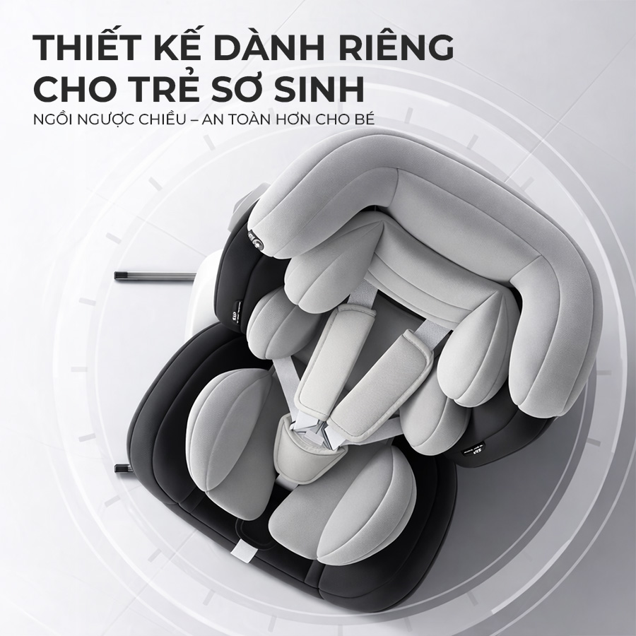 Khi đưa bé đi xe hơi, điều cha mẹ lo nhất chính là an toàn và sự thoải mái. QM-360A ra đời để giải quyết trọn vẹn cả hai yếu tố đó – một chiếc ghế xoay 360° chuẩn ISOFIX, đồng hành cùng bé từ sơ sinh đến 12 tuổi.