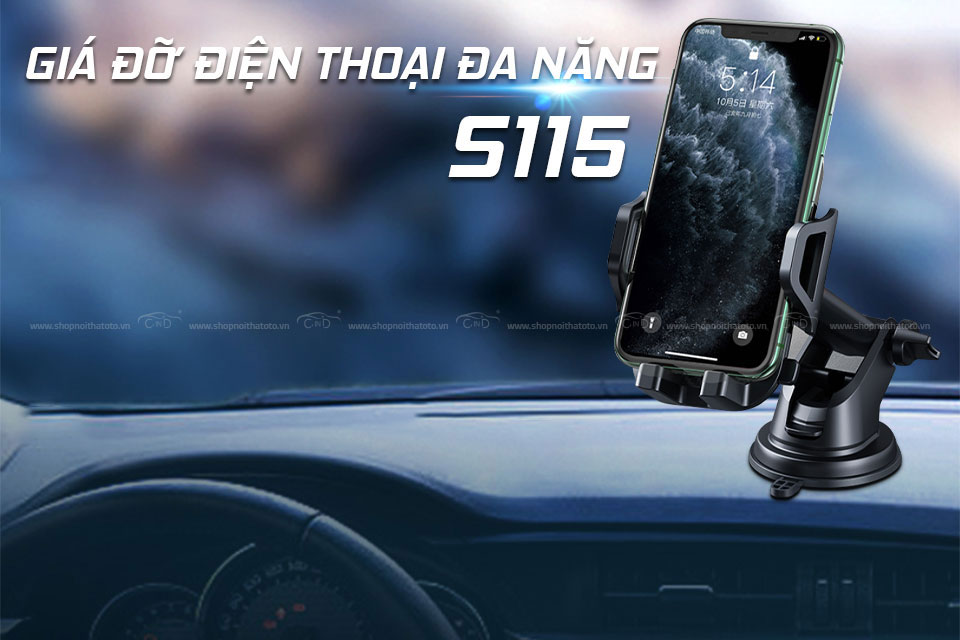 - Giá đỡ điện thoại đa năng S115 là sản phẩm có tác dụng như một chiếc giá đỡ bảo vệ đa năng sử dụng được nhiều vị trí trên xe như Taplo, mặt kính hay hay trong phòng, thiết kế nhỏ gọn, tiện lợi giúp sử dụng điện thoại ở chế độ rảnh tay. Sở hữu khả năng thay đổi kích cỡ thích hợp sử dụng cho nhiều dòng điện thoại khác nhau.