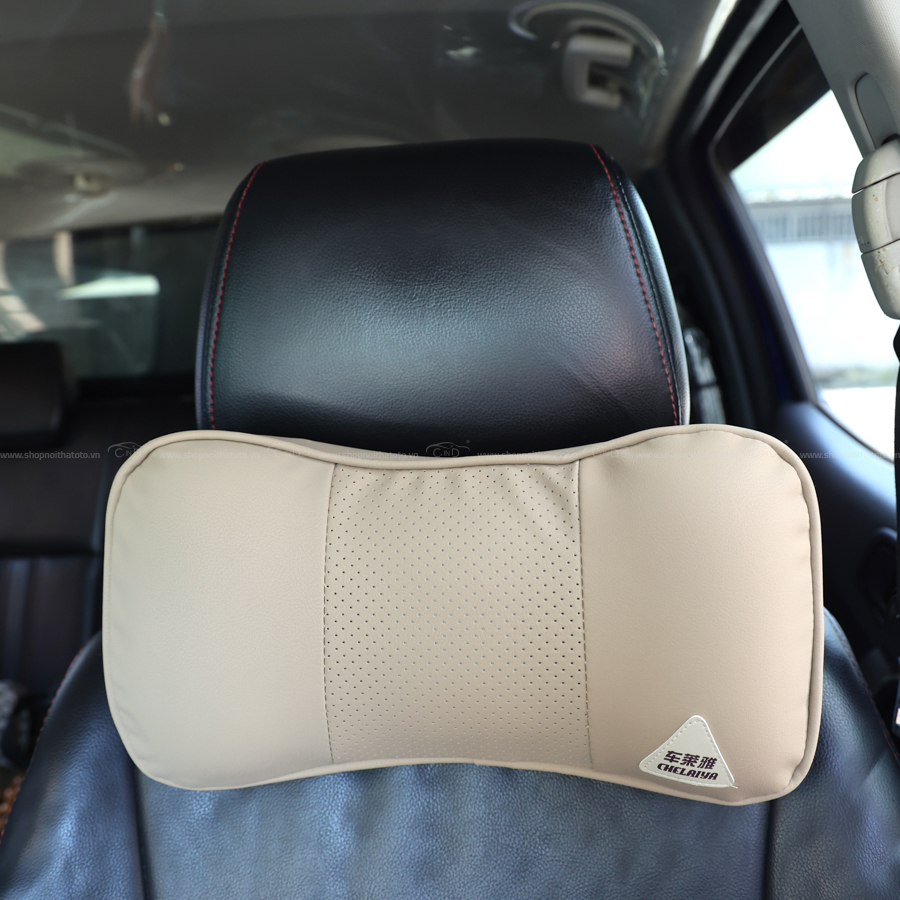 Giới thiệu Gối tựa đầu ô tô cao su non bọc da CHELAIYA MS004 màu kem