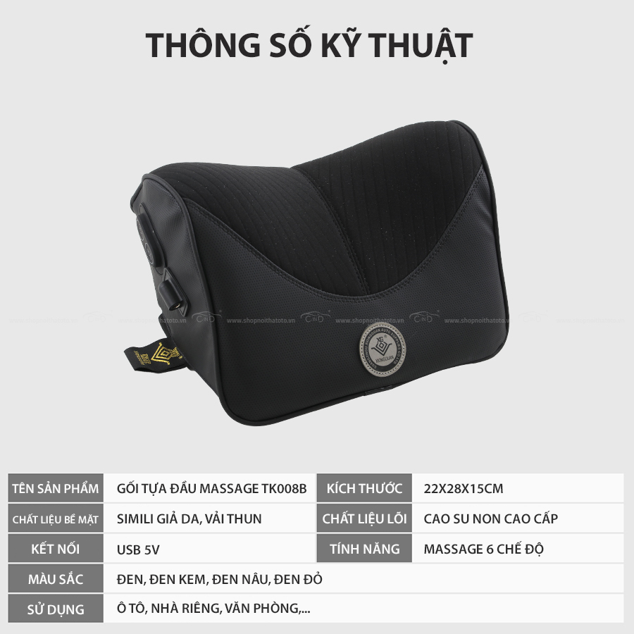 Giới thiệu Gối tựa đầu massage TK008A màu đen kem
