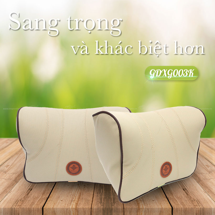 - Chất liệu Gối tựa đầu ô tô cao su non bọc da G003 màu kem: Vải bọc da, cao su non thiên nhiên.