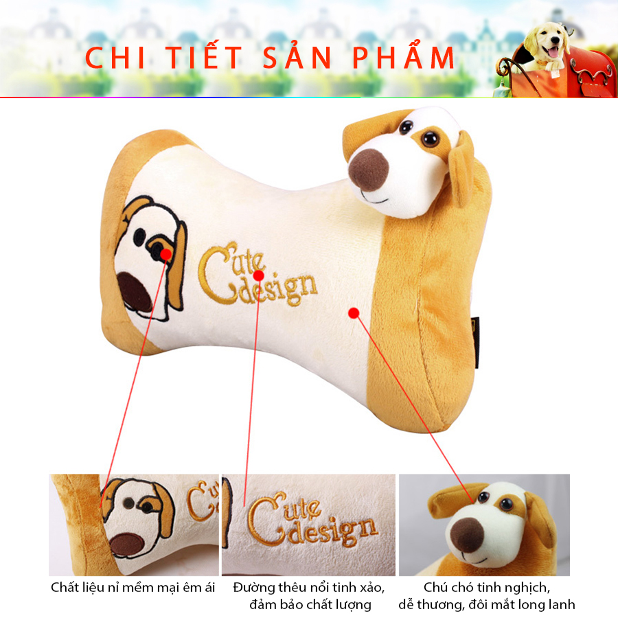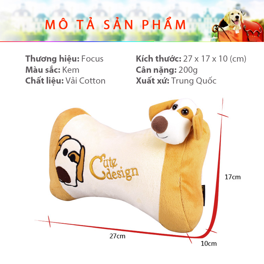 - Chất liệu Gối tựa đầu ô tô FOCUS chó MATION FM-T02A màu kem: Vải nhung, gòn cao cấp.