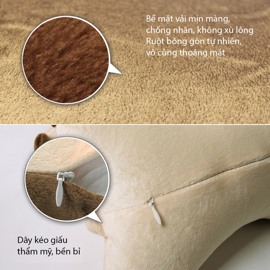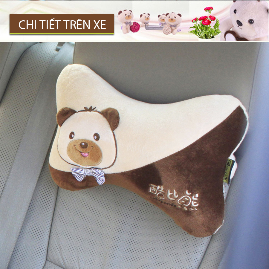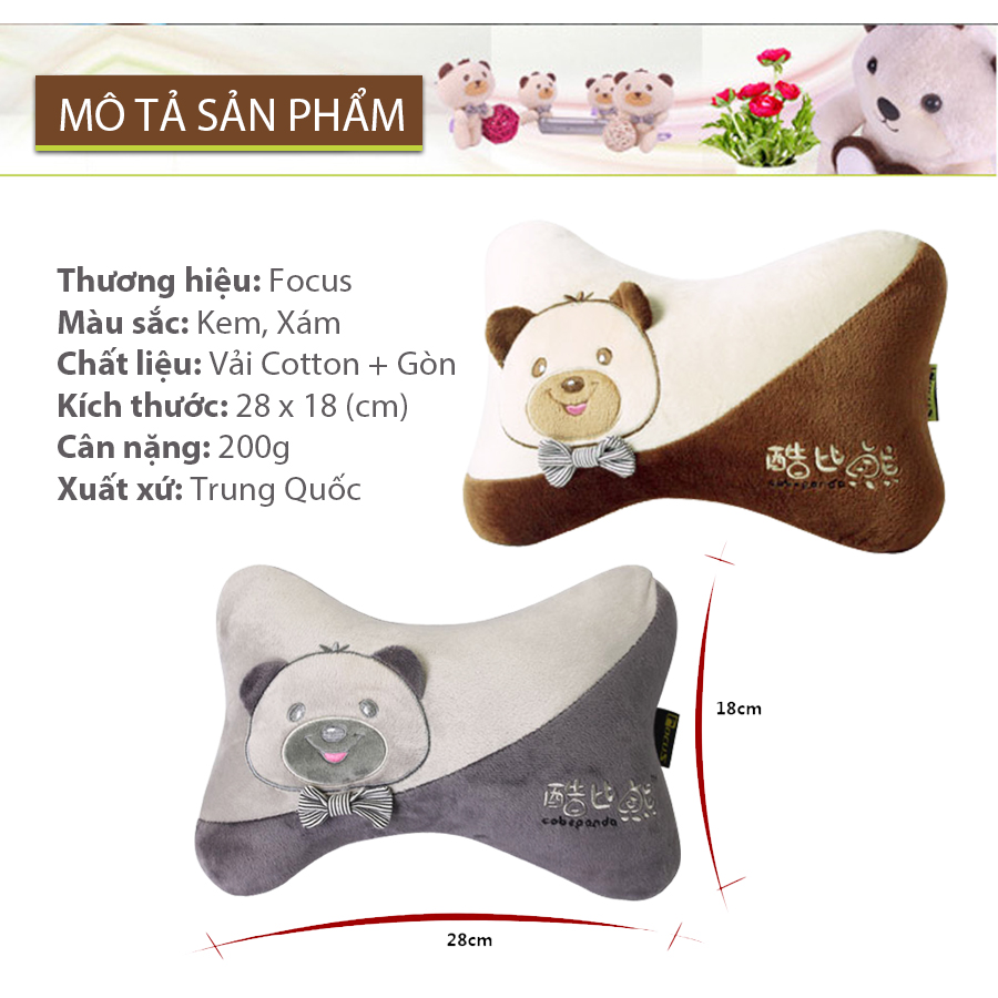 - Chất liệu Gối tựa đầu ô tô khúc xương kiểu T02 FOCUS COBE PANDA K-T02A màu kem: Vải nhung, gòn.