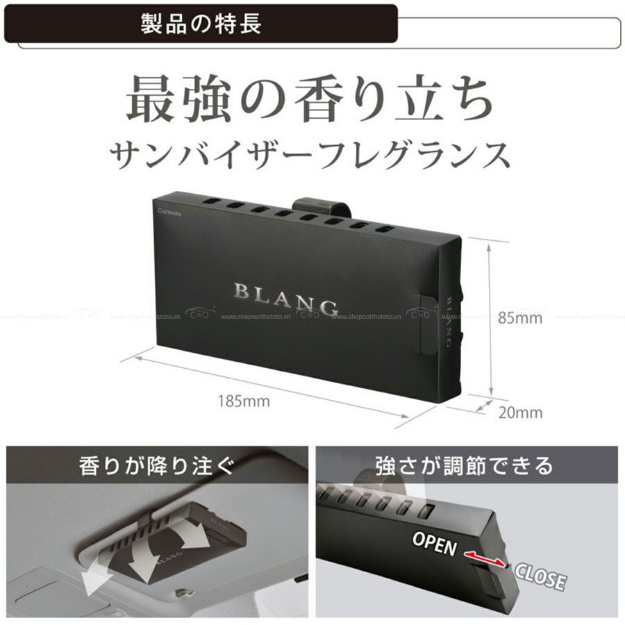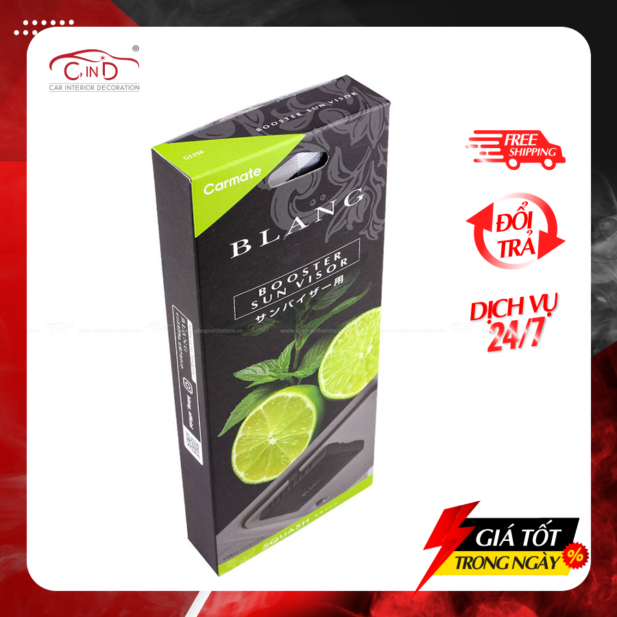 - Hộp thơm kẹp tấm chắn nắng ô tô CARMATE BLANG BOOSTER SUN VISOR G1356 Squash 20g giúp cải thiện không khí trong xe: khử sạch mùi hôi và ẩm mốc trong xe một cách hiệu quả.