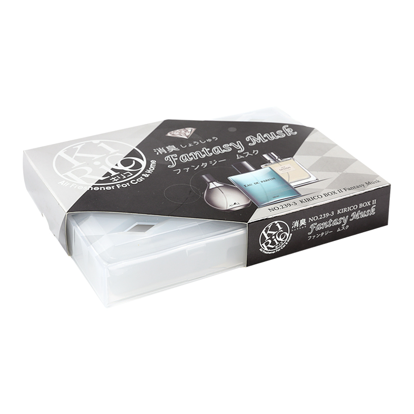 Hộp thơm khử mùi AIR-Q KIRICO BOX II NO.239-3 Fantasy Musk 160g với thiết kế mặt cắt sắc sảo cùng mùi xạ hương huyền ảo giúp bạn thư giãn một cách thoải mái đồng thời tạo nên không gian dễ chịu trong nội thất xe.