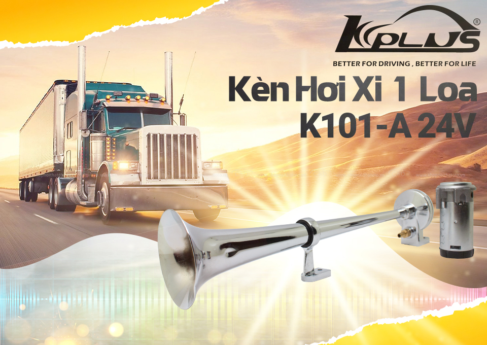 - Kèn hơi xi 1 loa KPLUS K101-A 24v (rơ le và mô tơ) được chế tạo bằng kim loại mạ inox làm cho âm thanh dội lại nhiều lần giúp âm thanh to và rõ ràng hơn.