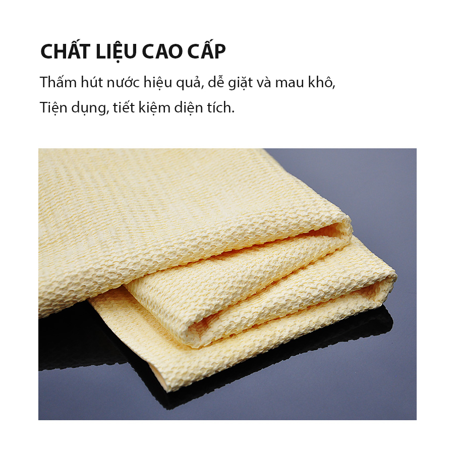 - Khăn lau đa năng 3D LEJ-6027 màu vàng (64*43*0.2cm) kết cấu sợi khăn khít chặt, không để lại vết lông trên bề mặt lau chùi.